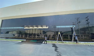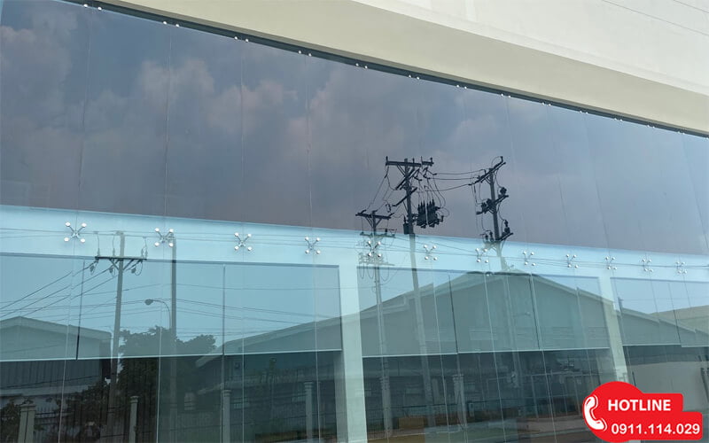 Thi công dán phim cách nhiệt cho toàn bộ khối các vách kính mặt tiền của công ty Nhựa Tái Chế Duy Tân