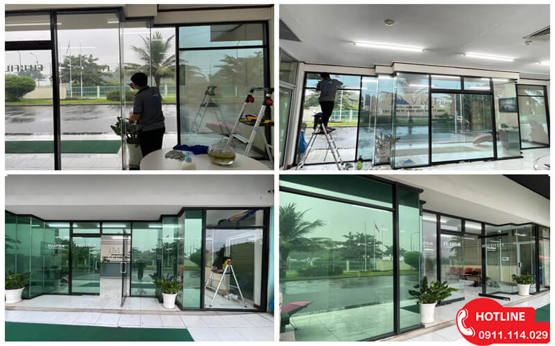Thi công dán phim cách nhiệt tại văn phòng công ty ở khu đô thị SaLa